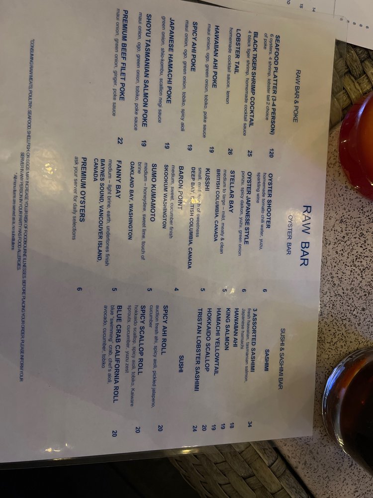 6 oysters, 4 jumbo shrimp, lobster tail, 2 choices of poke